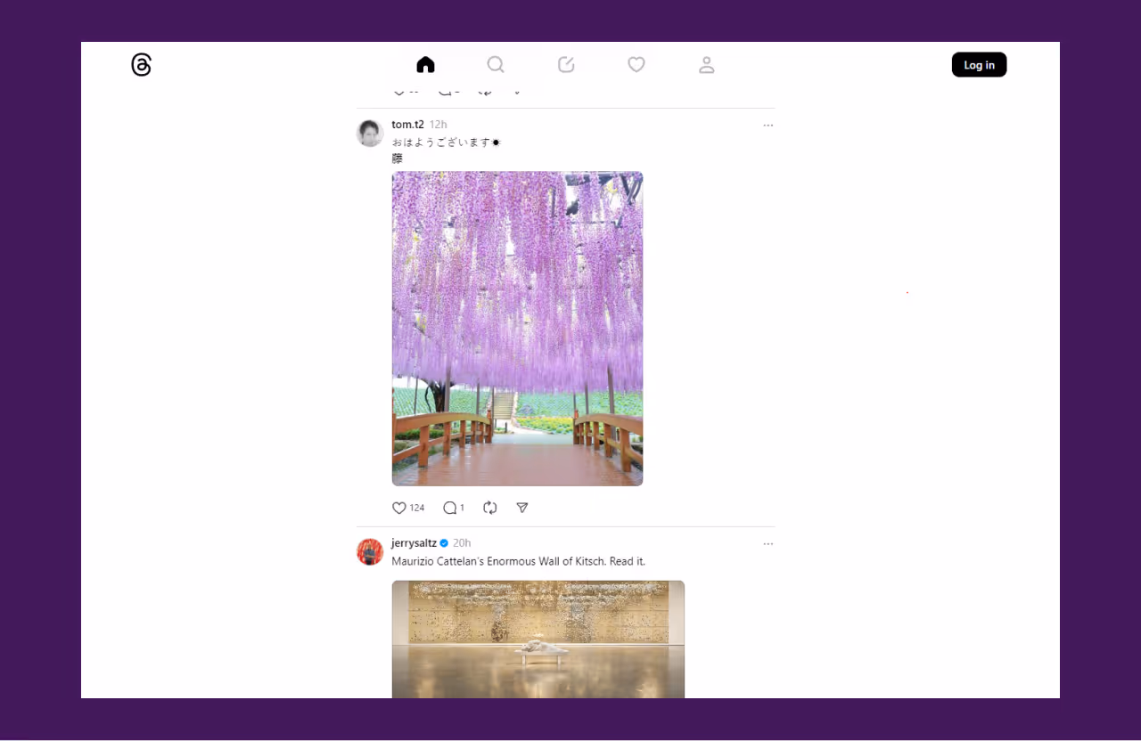 Threads פועלת בדפדפן ובאפליקציה במכשירים ניידים. הפונקציונליות בגרסת הדפדפן זהה לגרסה במכשירים ניידים. ניתן להוריד את האפליקציות ב-Google Play וב-App Store.
